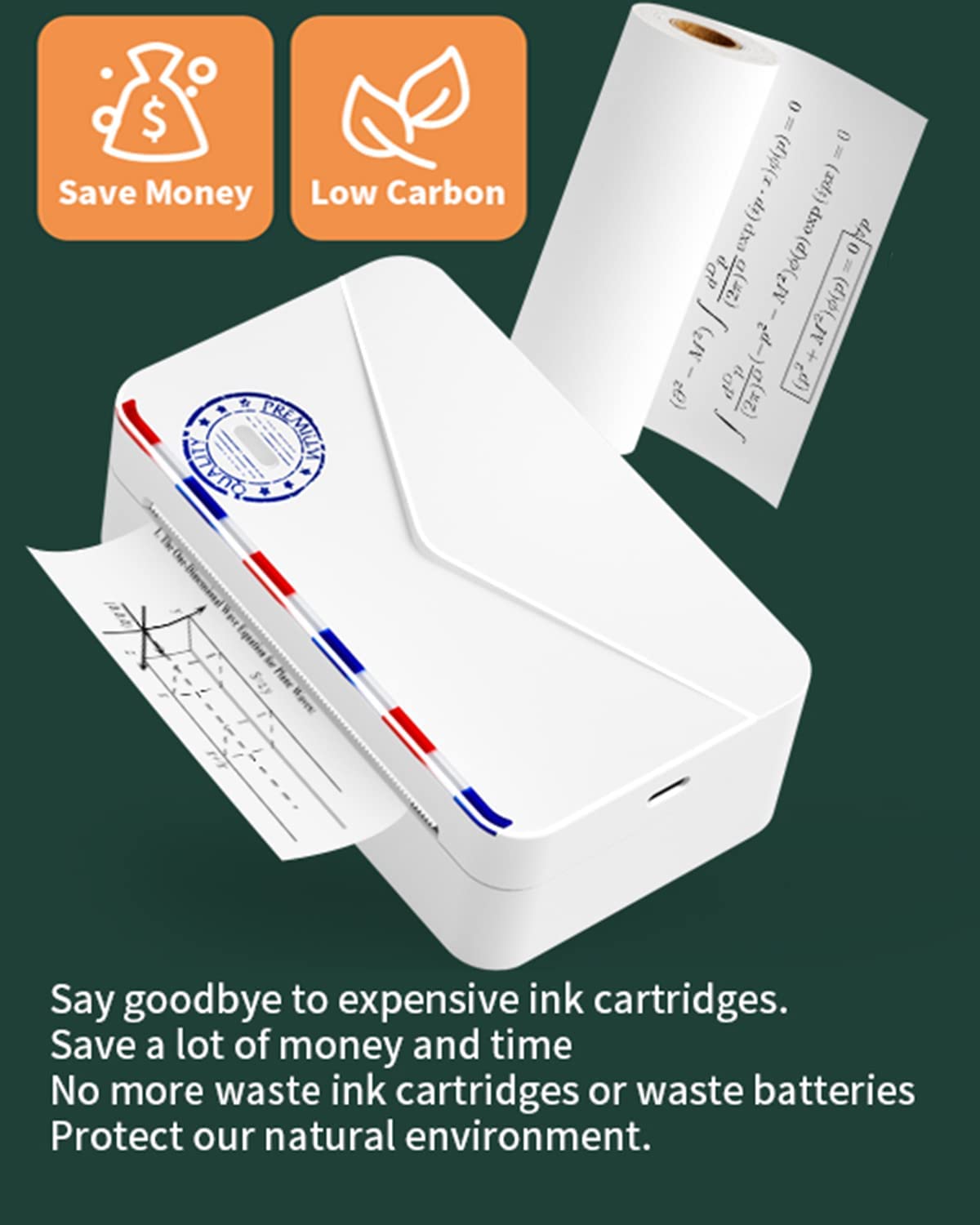 - Money Saver: M03AS thermal inkless printer no ink or Toner, Greener. Free: white sticker 1 roll (80MMx1.5M). Each M03AS label is made of 6 layers of high-quality materials, BPA free, and reliable quality, but you only need to spend less than $0.014/sheet, a very cost-effective sticker maker.