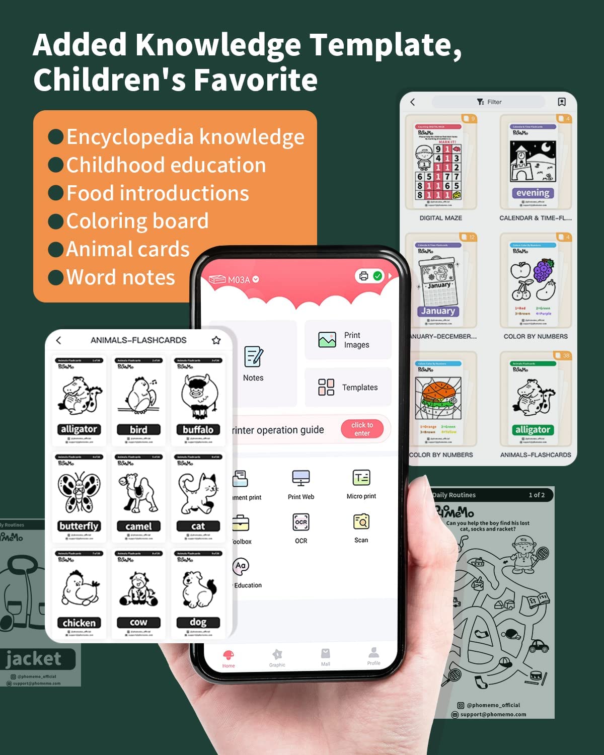 - Children’s Favorite: New function of the APP – “Children’s Paradise”, you can print with one click by selecting a template: coloring board/encyclopedia/animals/words/food introduction… M03AS printer allows you and your children to have fun together.The ideal sticker maker machine for children’s education.
