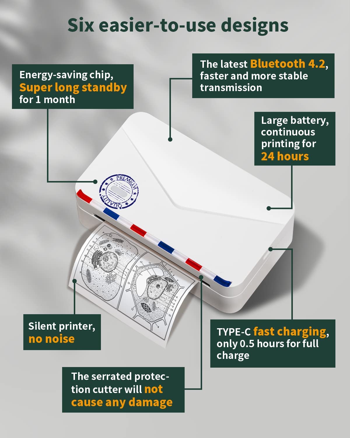 - Worry-free: (1) Bluetooth printer standby for up to 2 months, support TYPE-C fast charging and automatic shutdown, easily cope with various tasks that require a wireless printer. (2) Mini sticker printer (298g), matte design, make the pocket printer feel great and easy to carry. (3) 24 months free replacement of sticker printer machine , lifetime service, allowing you more peace of mind.