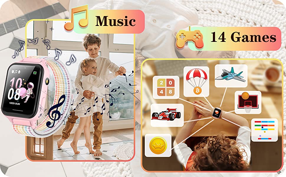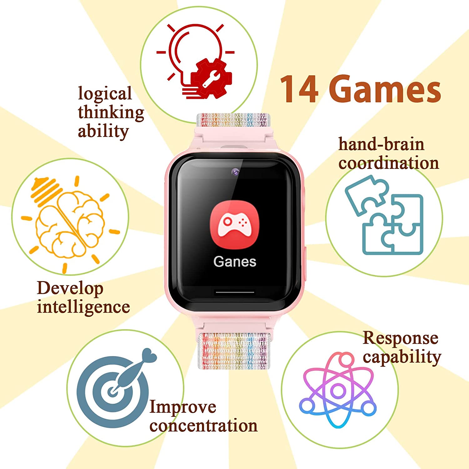 - 14 Games: This kids smart watch has 14 educational games, such as number games, racing games. Children can relax and improve their intelligence through games. Can be used to train children’s logic and reaction skills.