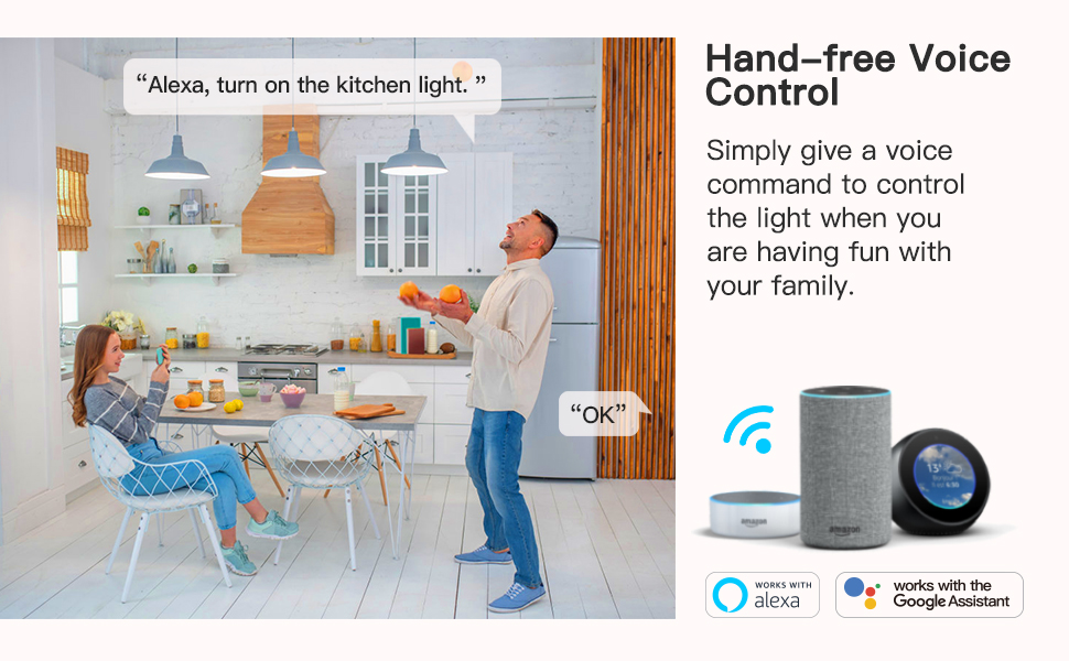 • VOICE CONTROL: Enjoy the hands-free convenience of controlling the lights in your home with your voice via Amazon Alexa and Google Assistant; perfect for times when your hands are full or entering a dark room.