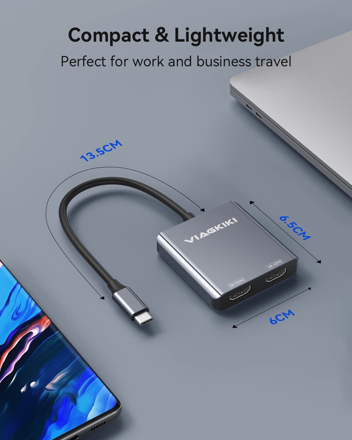 New in Open Box Viagkiki USB C to Dual HDMI Adapter 8K 4K, Dual HDMI Monitor Adapter, Support Single 8K@30Hz, Dual 4K@60Hz, Compatible for MacBook Pro/Air, Dell XPS 13/15, Lenovo Yoga