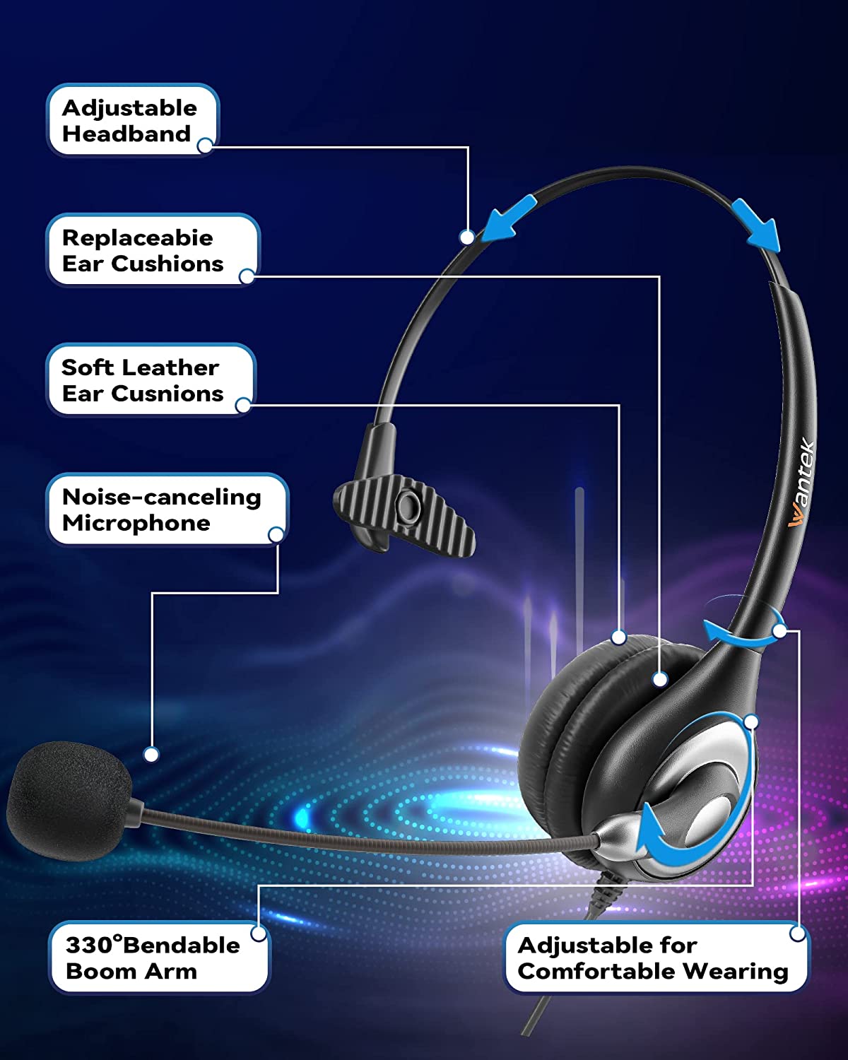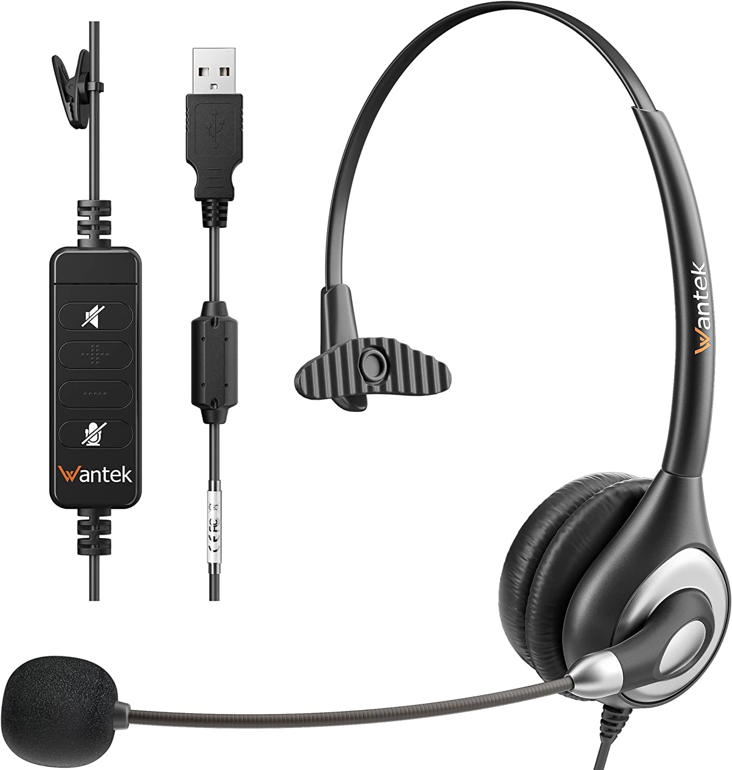 New in Open Box Wantek Corded USB Headsets Mono with Noise Cancelling Mic and in-line Controls, UC Business Headset for Skype, SoftPhone, Call Center, Crystal Clear Chat, Super Lightweight, Ultra Comfort (UC600)