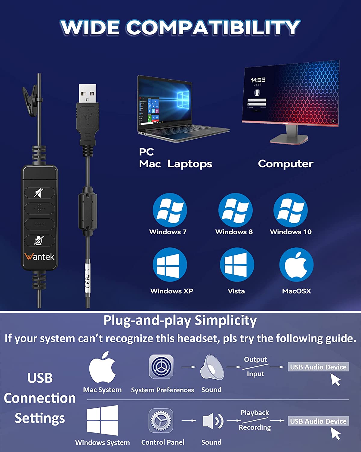 - PLUG AND PLAY: No drivers needed, directly connect the headset to a USB compatible devices. Headsets fit for Skype, Computer, Laptop, PC, Mac, Microsoft Lync, Cisco, and most leading UC platforms.
